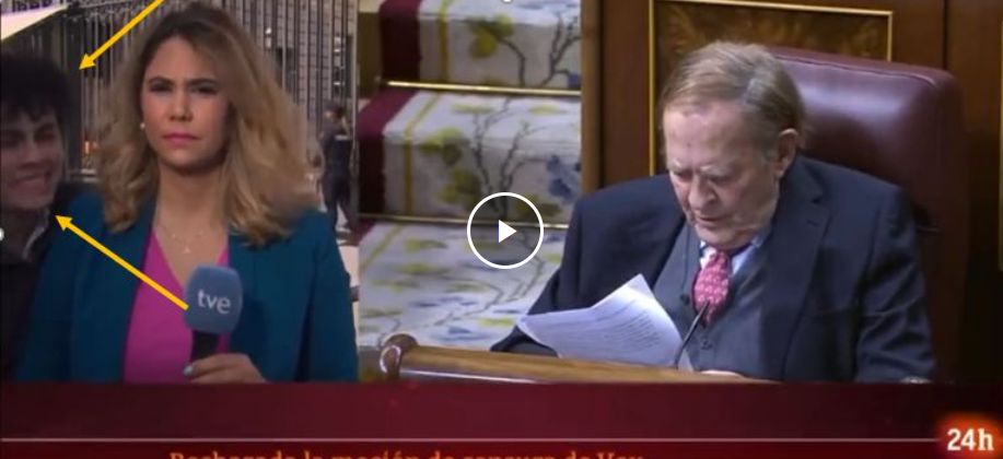 Pero la cosa no quedó ahí, en pleno directo en el telediario de TVE cuando el reportero estaba comentando su cronica, otro se le colo por el lado izquierdo de la pantalla y solo ese famoso ya